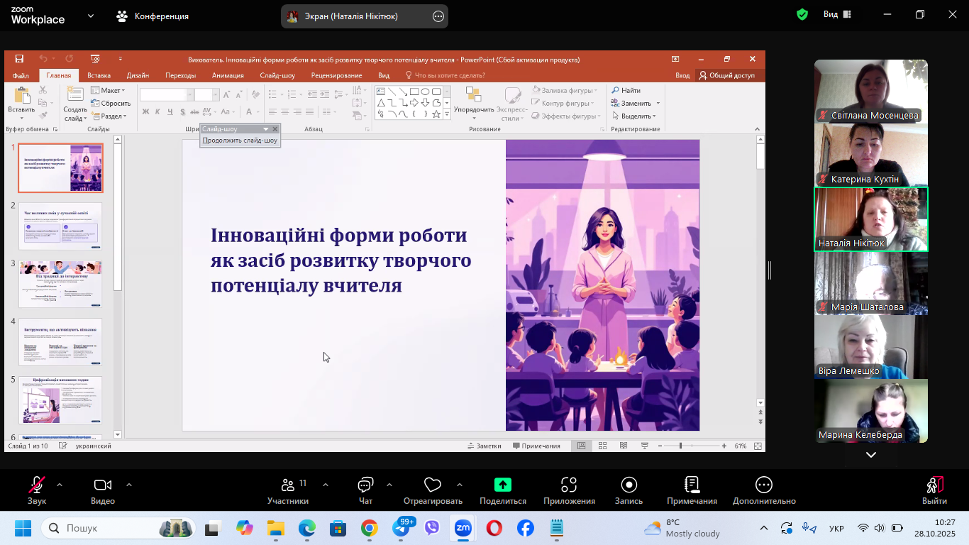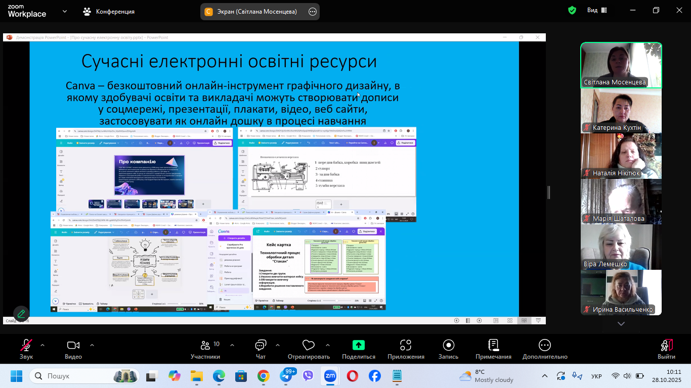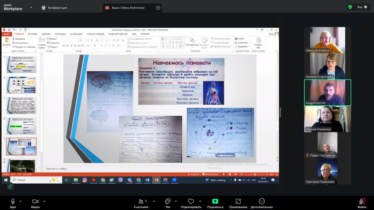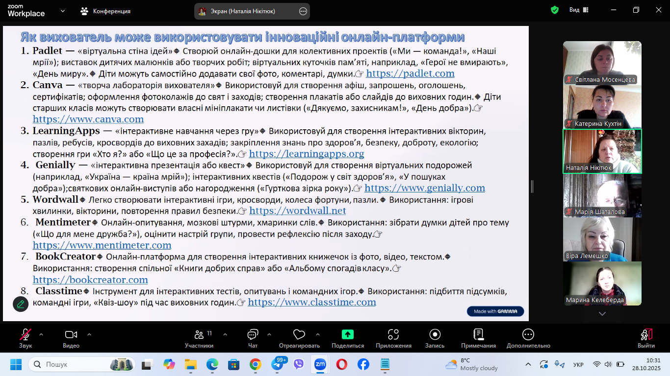 Тематика виступів і пропозицій кожного МО були пов’язані між собою – напередодні засідання жовтневої педагогічної ради обговорювалися питання про актуальність запланованих основних напрямків роботи закладу. Кожний доповідач ознайомив коллег з цікавими і новітніми методами, ресурсами, програмами і платформами пов’язаними з використанням штучного інтелекту. Це дуже важливий інструмент для розробки сучасних уроків та цікавих презентацій.