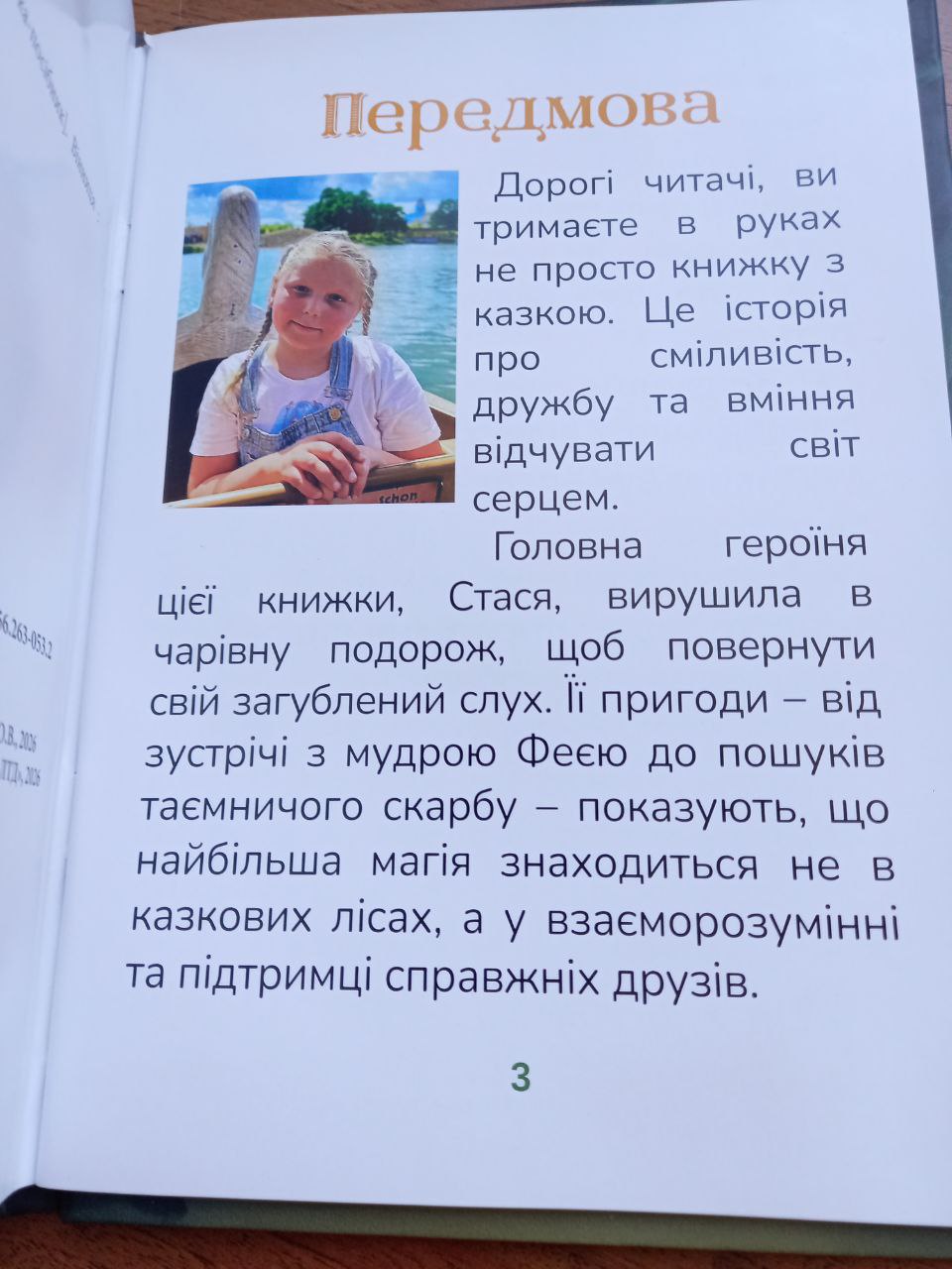 Представляємо надзвичайну книгу, яка запрошує читачів до чарівного світу звуків дівчинки Стасі. Це неймовірна казкова історія, у якій дівчинка, як і багато наших вихованців, крок за кроком відкриває для себе всесвіт, сповнений таємниць. Авторкою книги є мама головної героїні книги – Оксана Кальницька, яка йде з донькою пліч-о-пліч до відкриття світів, долаючи всі негаразди. Мати дівчинки з порушенням слуху стала авторкою зворушливої казки, у якій відобразила шлях своєї доньки до прийняття себе та пошуку власного світу звуків. Натхненням для книги стала сама дівчинка — її наполегливість, мрії та бажання «почути» світ по-своєму. Прототипом головної героїні стала її донька, яка у казковій історії вирушає у символічну подорож у пошуках свого слуху. Ця книга — про силу любові, підтримку родини та віру в те, що кожна дитина має свій унікальний шлях до розуміння світу.