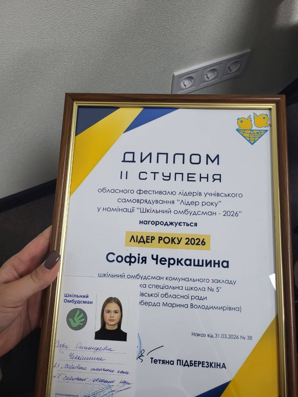 Маємо чудову новину та привід для гордості! Учениця КЗ “Харківська спеціальна школа 5” ХОР 02 квітня 2026 року здобула диплом ІІ ступеня в обласному фестивалі лідерів учнівського самоврядування «Лідер року» у номінації «Шкільний омбудсмен – 2026». Це вагоме досягнення є результатом наполегливої праці, активної громадянської позиції, лідерських якостей та щирого прагнення відстоювати права і інтереси учнівської молоді. Наша учениця гідно представила заклад освіти, продемонструвавши високий рівень підготовки, відповідальність і креативність. Щиро вітаємо переможницю з таким важливим здобутком! Бажаємо подальших успіхів, нових звершень та невичерпної енергії для реалізації всіх задумів! Дякуємо педагогам та наставникам за підтримку і підготовку, а також батькам — за віру та натхнення. Разом до нових перемог!