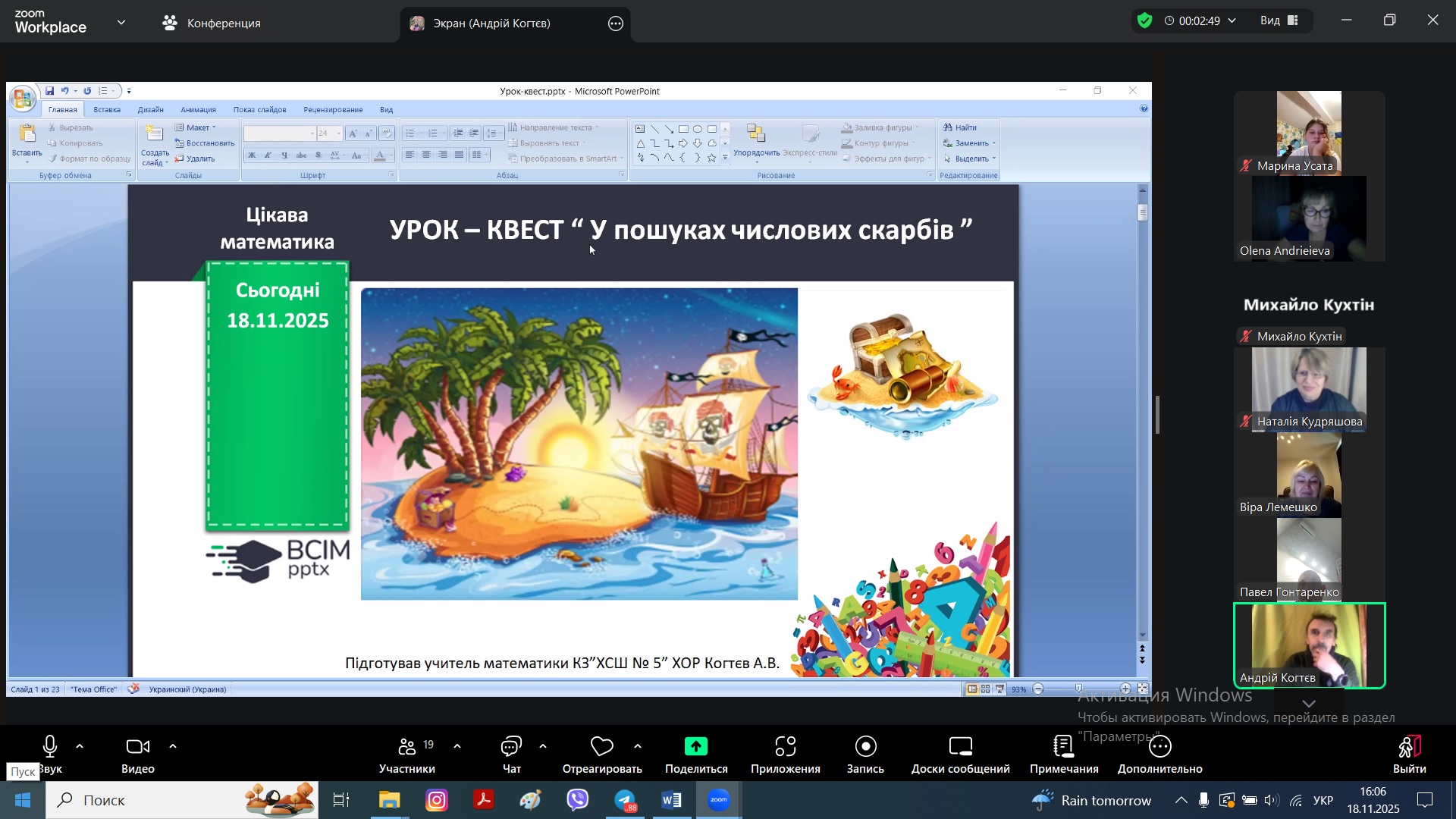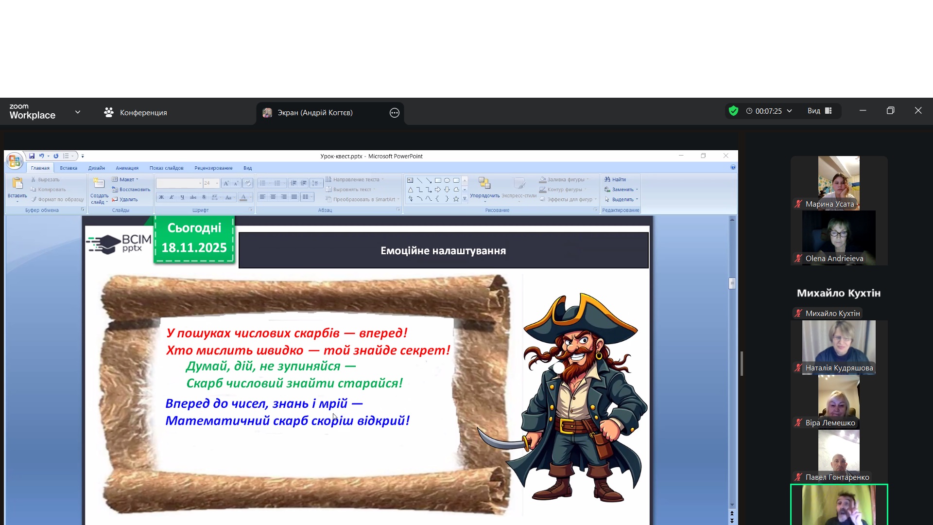 19 листопада 2025 року вчителем-методистом для КЗ “Харківська спеціальна школа 5” ХОР було проведено математичну квест-гру «У пошуках числових скарбів». Математика — це мова, якою написана історія розвитку людства. Вона супроводжує нас від перших лічильних камінців до сучасних космічних місій, від простих побутових вимірювань до високих технологій, що змінюють світ. Саме завдяки математичним ідеям люди навчилися будувати міста, передбачати природні явища, створювати комп’ютери, досліджувати Всесвіт і відкривати нові горизонти знань. Саме завдяки вмінню рахувати й визначати пропорції наші предки вели господарство, зводили перші храми, прокладали торговельні шляхи, спостерігали за небом і передбачали хід часу. Математичні знання були справжніми “числовими скарбами”, якими володіли лише наймудріші. І сьогодні ми вирушаємо у власну мандрівку слідами цих давніх відкривачів та винахідників. На нашому квест-уроці “У пошуках числових скарбів” ви матимете змогу відчути себе дослідниками, які розв’язують загадки, розшифровують символи та знаходять формули, що відкривають шлях до нових знань. Адже кожне число — це ключ, а кожна задача — новий крок у пригоді, яка триває вже тисячі років. Це чудова наука, що має вплив на успішність у будь яких життєвих ситуаціях. Математика формує логічне мислення, розвиває здатність знаходити закономірності й приймати виважені рішення. Вона вчить бачити красу в точності, силу – у структурі, а можливості – у кожному числі.