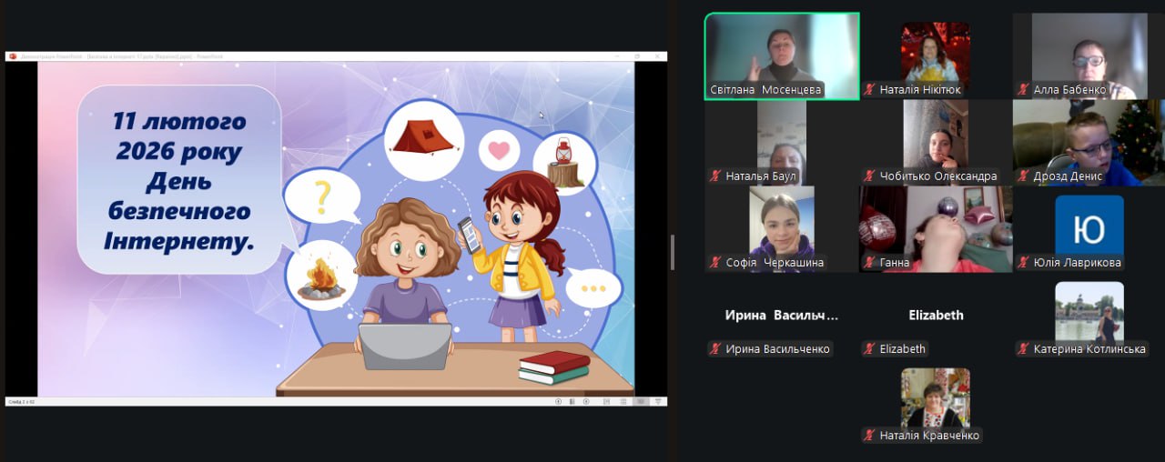 У нашому закладі освіти 03 лютого 2026 року відбувся виховний захід для учнів молодшого шкільного віку на тему « Безпека в інтернеті ». Метою зустрічі було сформувати в дітей відповідальне та обережне ставлення до користування мережею Інтернет, навчити розпізнавати можливі небезпеки та правильно діяти у складних ситуаціях. Під час заходу школярі в доступній та ігровій формі ознайомилися з основними правилами безпечної поведінки в онлайн-просторі: чому не можна повідомляти особисту інформацію незнайомцям; як поводитися, якщо отримав підозріле повідомлення; чому важливо користуватися інтернетом разом із дорослими; як реагувати на образи або небажаний контент.