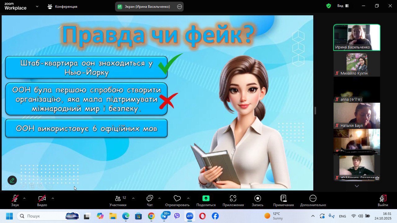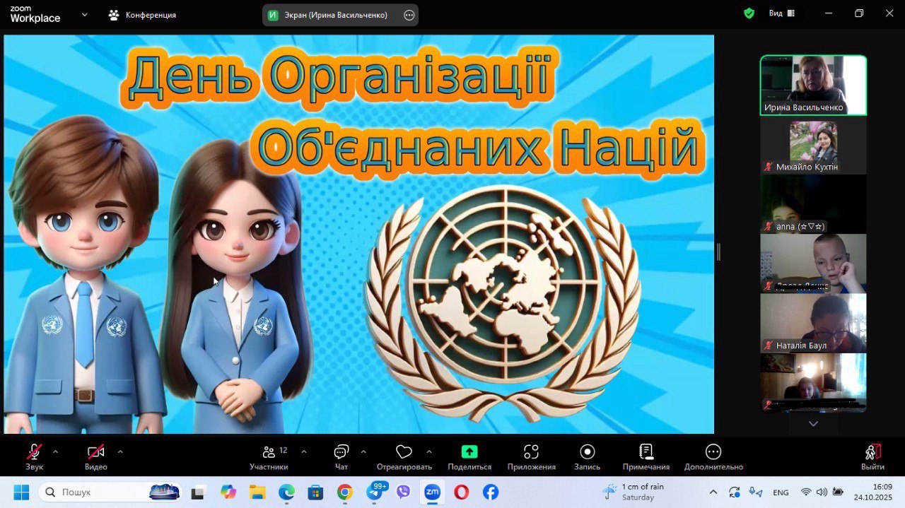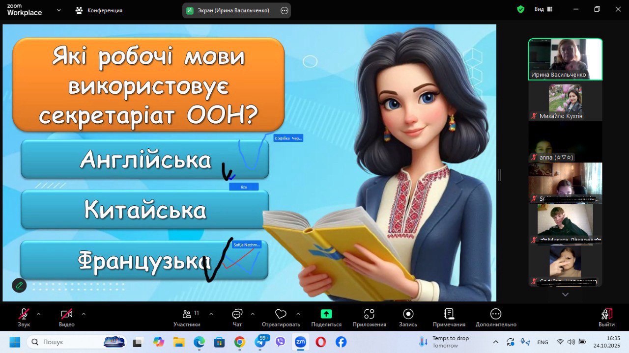 24 жовтня у всьому світі відзначають День Організації Об’єднаних Націй — свято миру, співпраці та взаєморозуміння між народами. Саме цього дня у 1945 році набув чинності Статут ООН, який став основою діяльності цієї міжнародної організації. 23 жовтня вихователями школи КЗ “Харківська спеціальна школа 5” ХОР був проведений виховний захід: “День Організації Об’єднаних Націй”. ООН об’єднує 193 країни світу, що працюють разом задля забезпечення миру, захисту прав людини, боротьби з бідністю, голодом і хворобами, а також задля збереження нашої планети для майбутніх поколінь. Цей день став чудовою нагодою для виховних годин, перегляду пізнавальних відео та бесід про те, чому важливо жити в злагоді, поважати інших та берегти мир. Учні дізналися, що кожен може робити свій внесок у кращий світ — через добрі вчинки, толерантність, взаємодопомогу та турботу про довкілля. Здобувачі освіти розгадували ребуси та кросворди, жваво приймали участь у знаходженні правильних відповідей на всі питання.