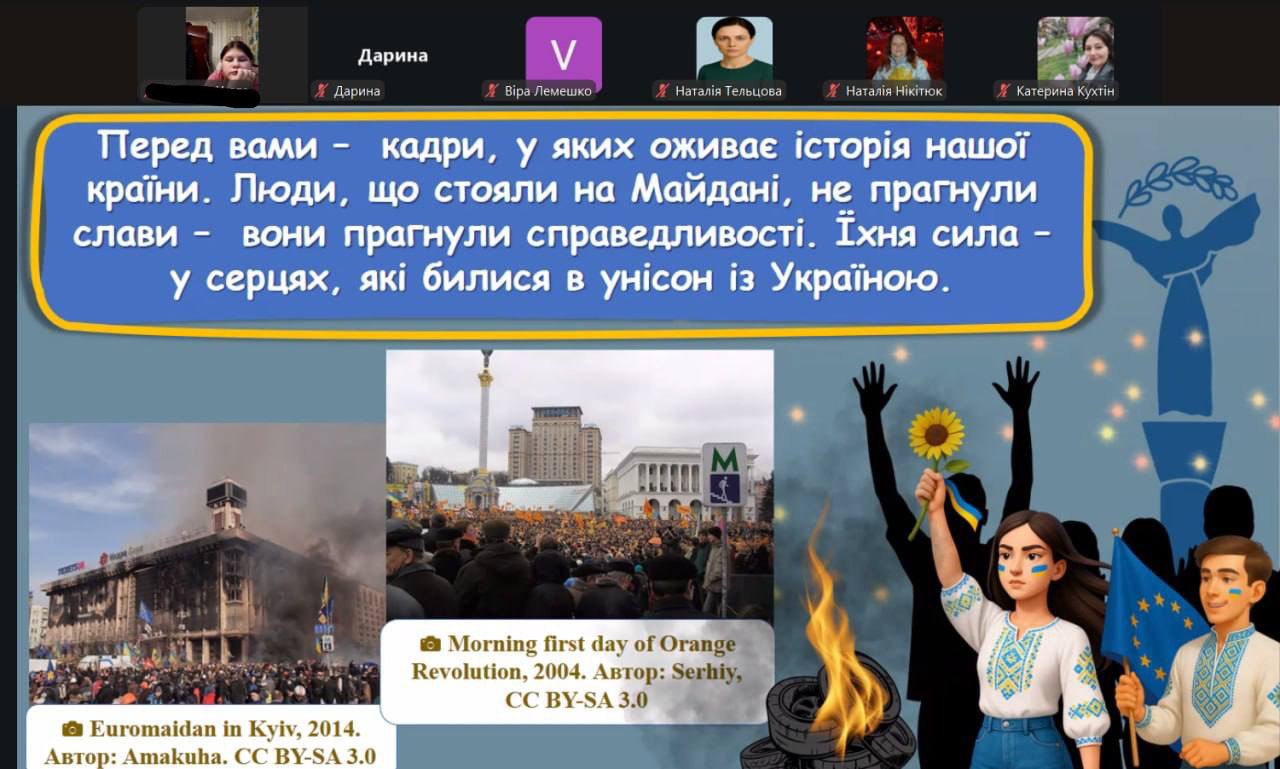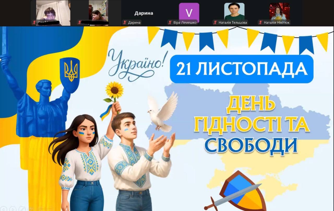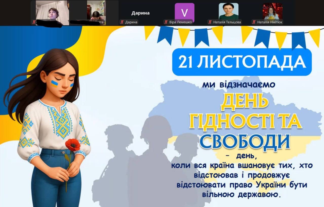 21 листопада Україна відзначає День Гідності та Свободи — одну з найважливіших подій у сучасній історії нашої держави. Це день, коли ми вшановуємо мужність, патріотизм і прагнення українців до свободи, демократії та національної єдності. У нашій школі відбувся виховний захід, присвячений цій значущій даті. Метою заходу було формування у здобувачів освіти розуміння важливості громадянських прав і свобод, почуття національної гідності, поваги до історичного минулого та сучасних подій, що формують наше сьогодення. Учні переглянули інформаційні матеріали про події Помаранчевої революції та Революції Гідності, обговорили значення цих революцій для країни та кожного громадянина. Діти поділилися власними думками про те, що для них означають поняття «гідність», «свобода», «патріотизм», а також створили символічні листівки-побажання миру й єдності Україні. Особливо зворушливим моментом стало вшанування хвилиною мовчання Героїв Небесної Сотні та всіх захисників, які відстоювали й продовжують відстоювати свободу нашої держави. Проведений захід допоміг учням глибше усвідомити важливість збереження історичної пам’яті, поваги до прав людини та відповідальності за майбутнє своєї країни. Ми виховуємо покоління, яке знає свою історію, цінує свободу та здатне захищати демократичні цінності.
