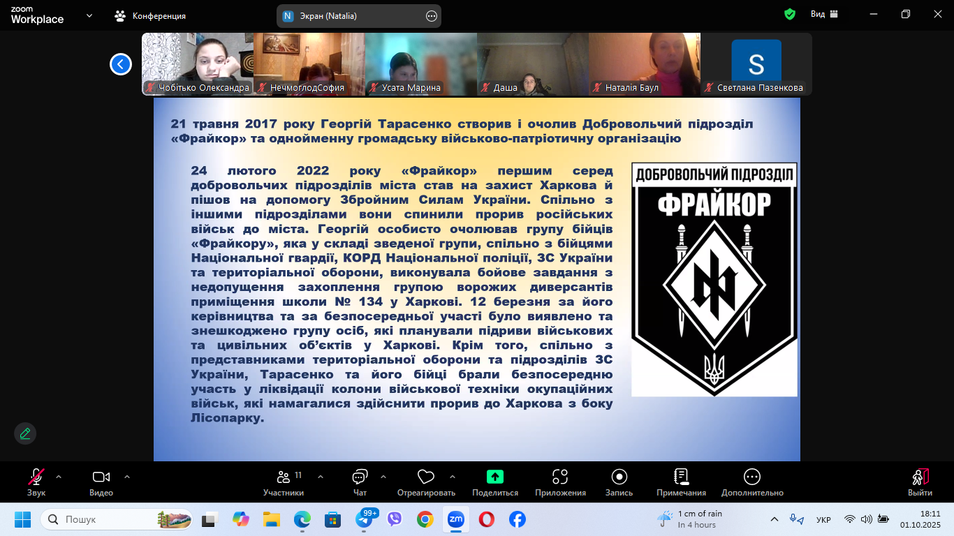 Вихователі із вдячністю говорили про мужність воїнів Збройних Сил України, вшановували пам’ять тих, хто віддав своє життя за незалежність та свободу нашої країни та продивились презентацію про видатних героїв Харківщини. Також учні разом з вихователями виготовили гарні листівки з українською символікою для ЗСУ.