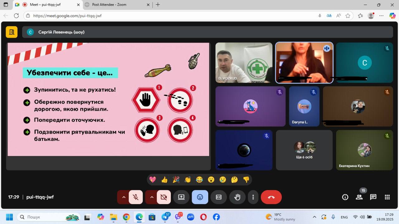 Сертифіковані тренери організації ознайомили учнів з цікавою презентацією, в цілому ГО “Грін-Ландія” є сертифікованим оператором протимінної діяльності.