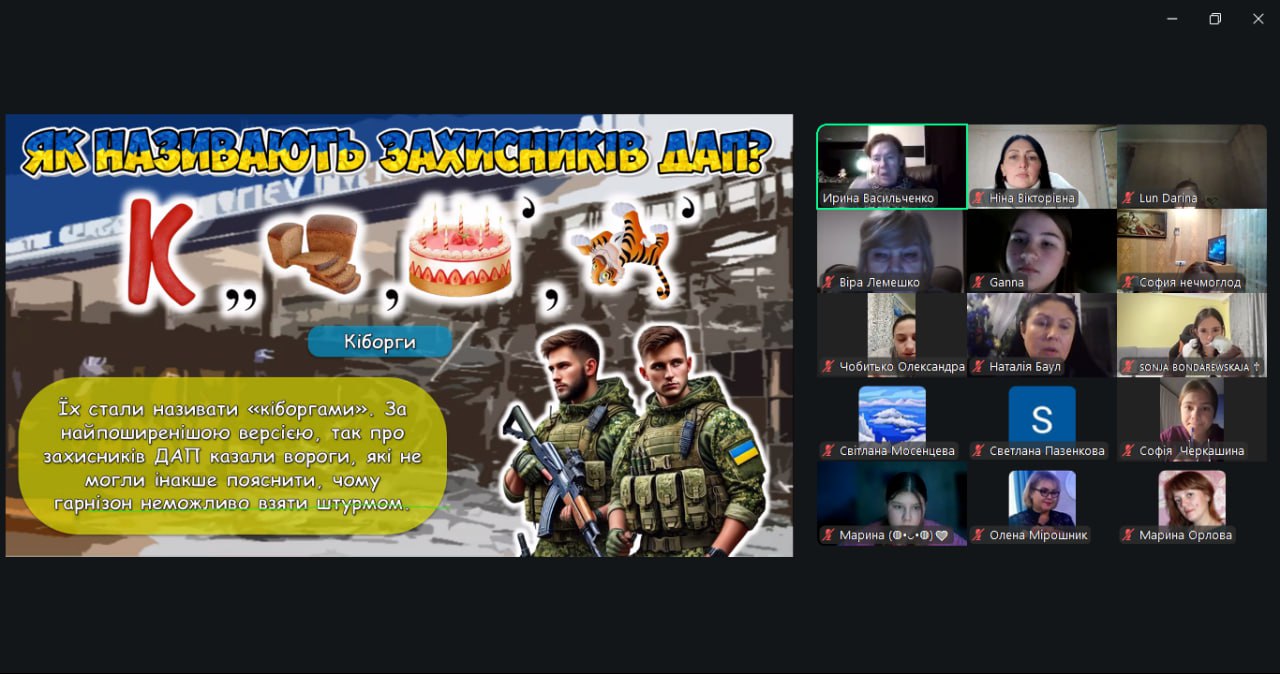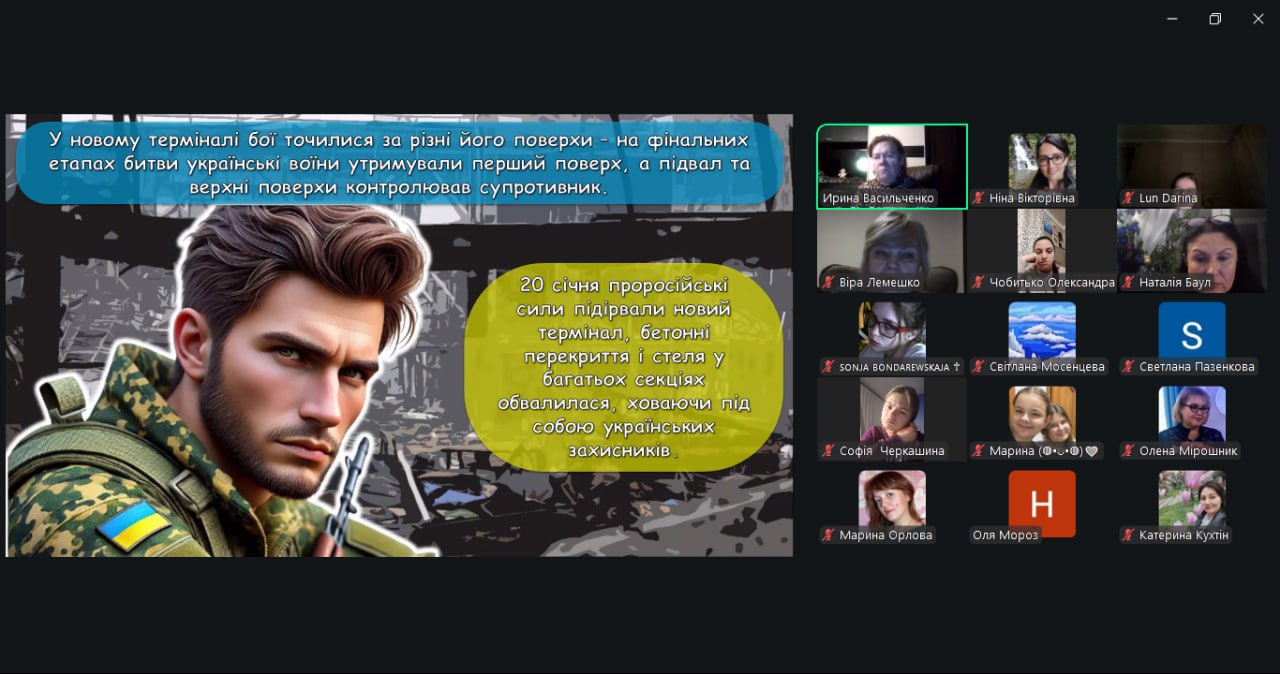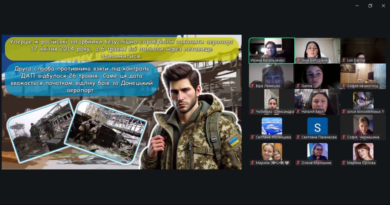 У нашому закладі освіти відбувся виховний захід для школярів, присвячений героїчному захисту Донецького аеропорту та його легендарним оборонцям — українським воїнам, яких назвали «кіборгами». Під час заходу учні дізналися про події 2014–2015 років, коли захисники ДАПу протягом 242 днів тримали оборону, демонструючи надлюдську витримку, мужність і вірність присязі. Через розповіді, відеоматеріали та презентації школярам було показано, чому ворог назвав наших воїнів кіборгами — за їхню незламність та силу духу. Особливу увагу приділили значенню подвигу кіборгів для сучасної України, формуванню національної свідомості, патріотизму та поваги до захисників нашої держави. Учні вшанували пам’ять загиблих героїв хвилиною мовчання, запалили пам’ятну свічку та висловили слова вдячності всім, хто боронить Україну сьогодні.