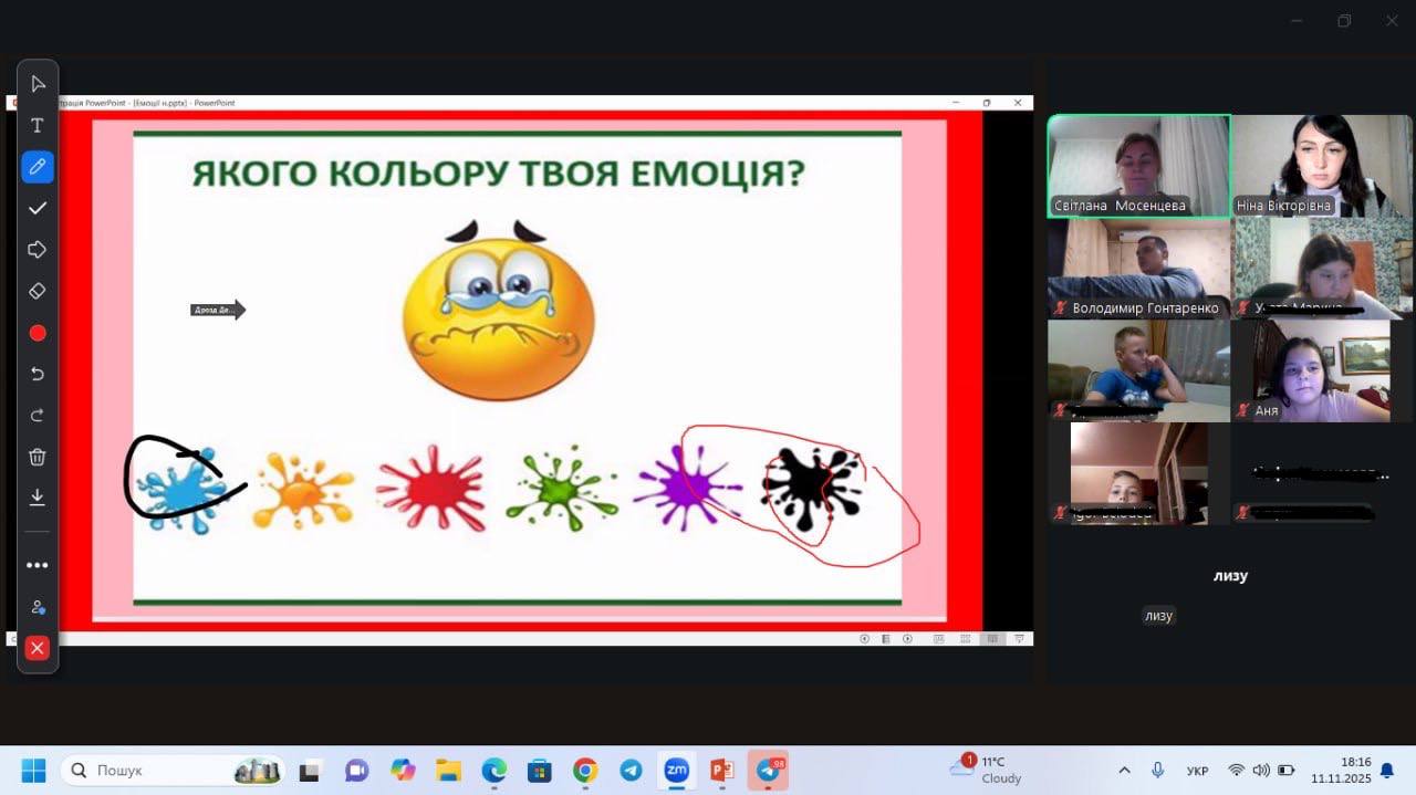 Цікавим моментом заходу стала гра «Впізнай емоцію», під час якої учні дивилися на зображення облич і визначали, яку емоцію показує людина. Потім вони створювали «Коло настрою», де кожен позначав свій теперішній емоційний стан кольором.