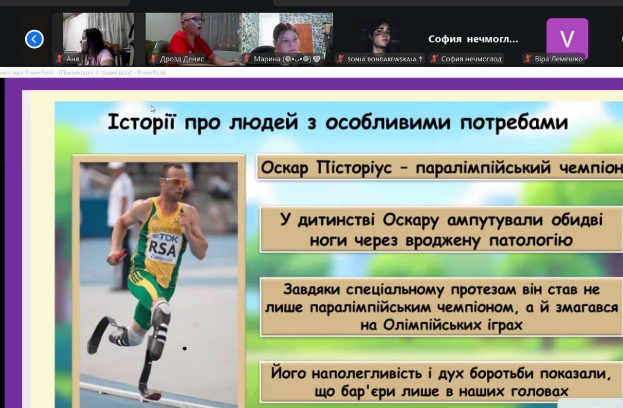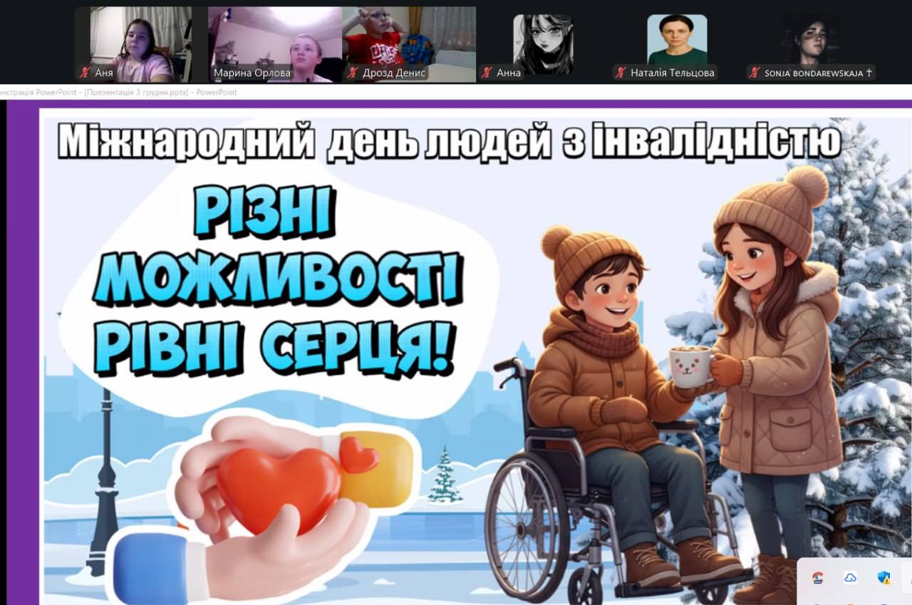 До Міжнародного дня людей з інвалідністю у КЗ “Харківська спеціальна школа 5” ХОР відбувся важливий та змістовний виховний захід під назвою «Різні можливості — рівні права», спрямований на формування толерантності, поваги та розуміння серед учнів. Метою зустрічі стало нагадати школярам, що кожна людина — цінна, важлива та гідна підтримки, незалежно від своїх фізичних чи сенсорних особливостей. Діти переглянули тематичні відео, взяли участь у бесіді про інклюзію, права людини та важливість взаємодопомоги. Особливу увагу було приділено тому, як правильно та з повагою поводитися з людьми, які мають інвалідність, і як створювати дружнє та безбар’єрне середовище навколо себе. Учні працювали в групах, виконували інтерактивні завдання, обговорювали життєві ситуації, що пов’язані з рівними правами. Такі активності допомогли зрозуміти: хоча всі ми різні, кожен має право на освіту, мрію, повагу й гідне життя. Захід завершився створенням спільного « Корзину добра », у яку діти розмістили свої побажання миру, підтримки та рівності для всіх людей.