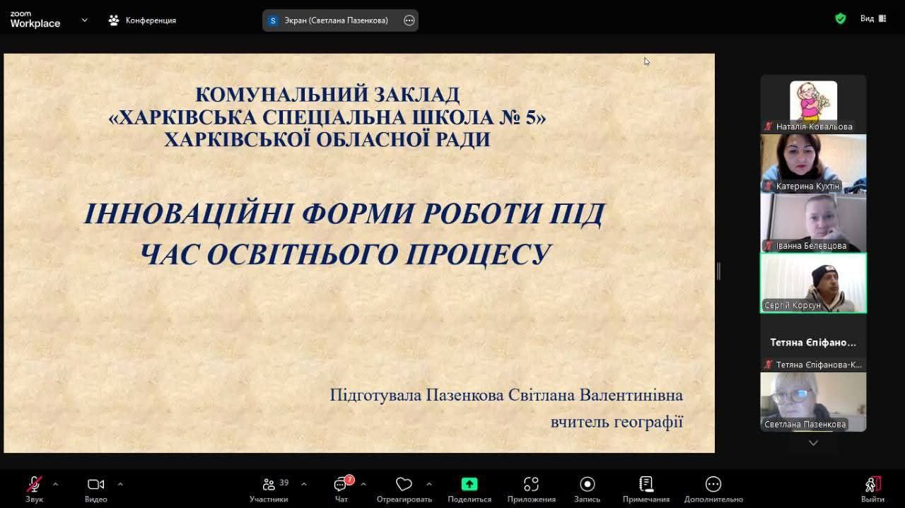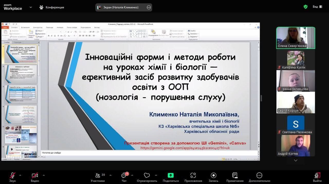 30 жовтня 2025 року в Комунальному закладі «Харківська спеціальна школа 5» Харківської обласної ради було проведено засідання педагогічної ради на тему: «Інноваційні форми роботи з педагогічними кадрами як ефективний засіб розвитку творчого потенціалу вчителя”. Кожен з доповідачів поділився з колегами власним досвідом роботи з новітніми програмами та використанням штучного інтелекту для створення сучасних і цікавих інтерактивних уроків. Були представлені різні методики і освітні ресурси що зараз використовують вчителі у роботі з дітьми з порушення слуху а також з групами дошкільної освіти. Багато сучасних платформ, ігрових методів проведення онлайн освіти висвітили вчителі в цікавих презентаціях і доповідях.